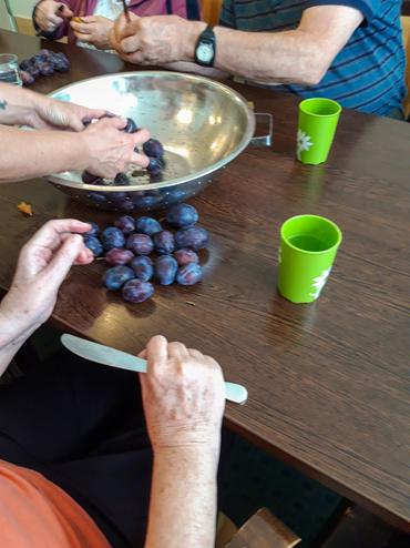 Am Dienstagvormittag wurden in der Seniorenresidenz »An der Rädelstraße« von Bewohnern und Mitarbeitern der Betreuung fleißig Pflaumen entkernt, gekocht und Mus zubereitet. Die Senioren erzählten sich dabei viel aus früheren Zeiten. Auch passende Gedichte und Geschichten wurden vorgelesen. Am Donnerstag wird daraus ein hoffentlich ein leckerer Pflaumenmuskuchen gebacken.