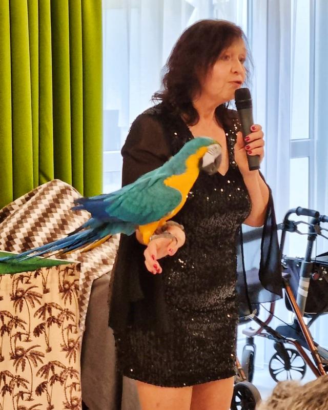 Im Oktober gab es für unsere Bewohner:innen des Pflegekompetenzzentrums Glauchau eine besondere Überraschung: Zwei Papageien, die durch Frau Bachmann ins Haus gebracht wurden, zogen die Aufmerksamkeit und das Interesse der Bewohner:innen auf sich. Mit ihrer bunten Erscheinung und neugierigen Art brachten sie Freude und Abwechslung in den Alltag. Für alle, die es sich zutrauten, gab es zudem die Möglichkeit, die Papageien auf den Arm zu nehmen. Nach den Alpakas im September ist dieser tierische Besuch ein weiteres Highlight, das noch lange in Erinnerung bleiben wird.