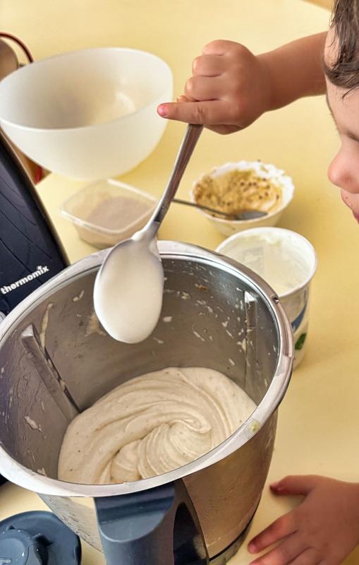 Mit unserem Thermomix zauberten wir leckeres Eis aus gefrorenen Früchten wie Pflaume, Apfel und Banane, Naturjoghurt und ein bisschen Zucker. Einen Tag vorher haben wir das Obst klein geschnitten und eingefroren – so war alles am großen Eis-Tag ruckzuck fertig.